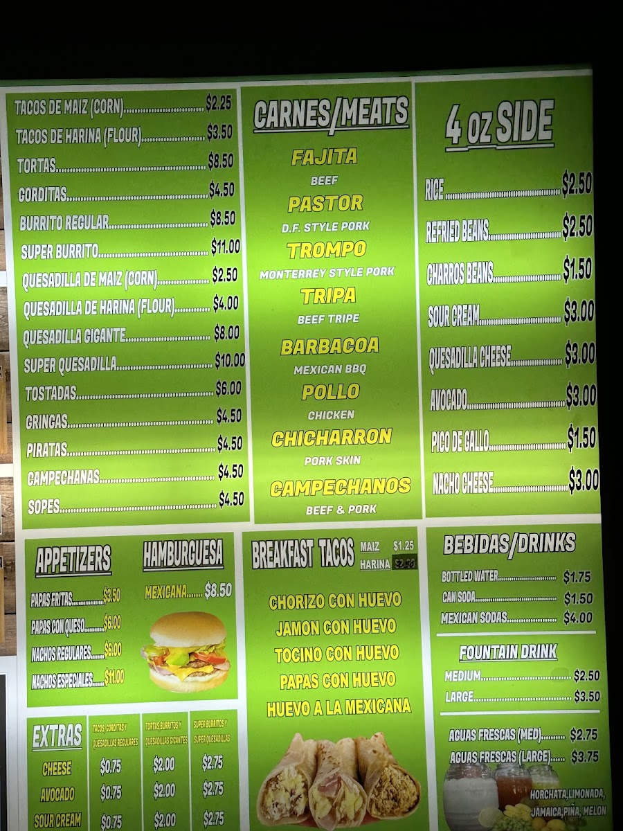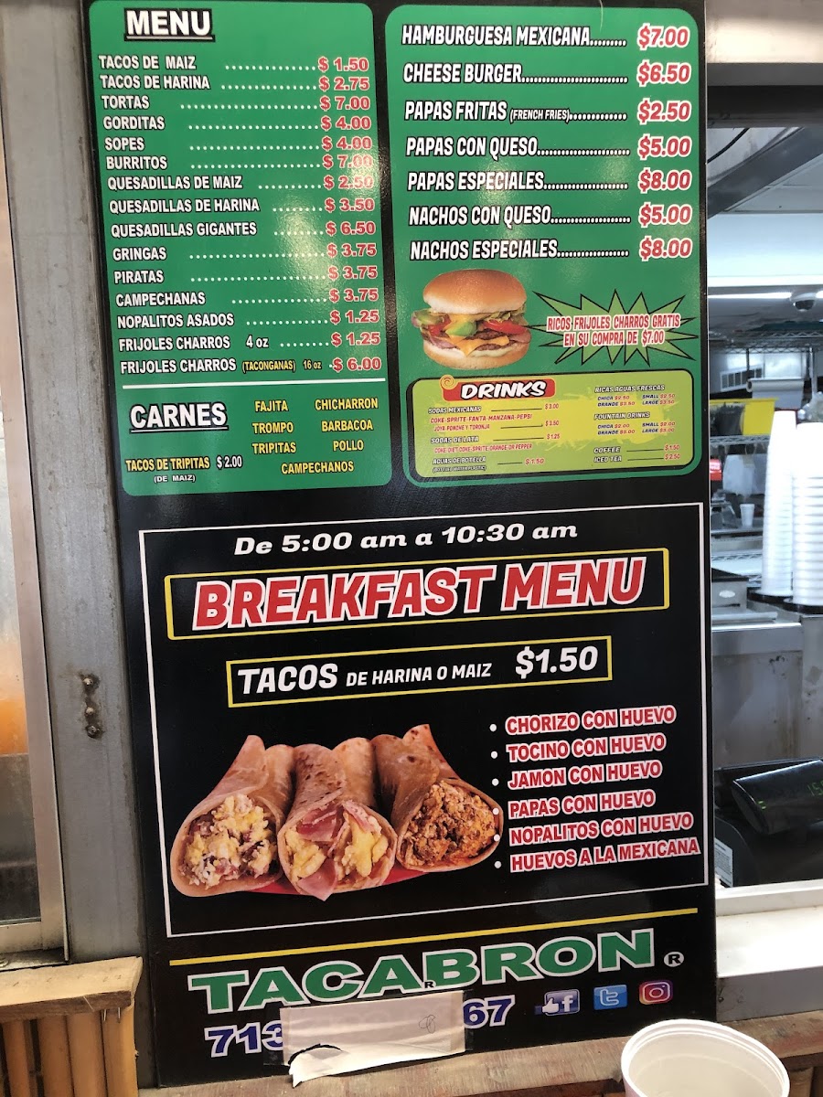 The menu at Tacabron Bar & Grill offers a straightforward and inviting selection of tacos and casual Mexican dishes perfect for satisfying cravings any time of the day. With a focus on traditional flavors served in a relaxed setting, the menu features comforting bites like quesadillas, corn tacos, and distinctive options such as Trips and Trompo or Tacos De Chicharron.